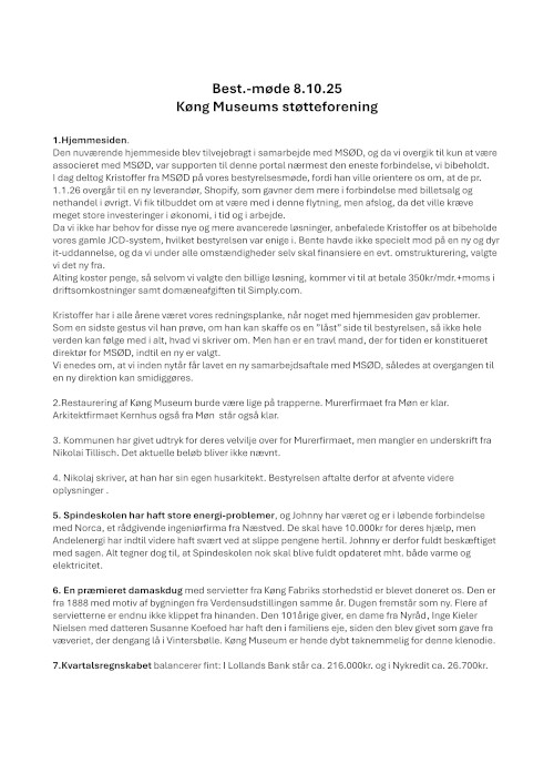 I dag deltog Kristoffer fra MSØD på vores bestyrelsesmøde, fordi han ville orientere os om, at de pr. 1.1.26 overgår til en ny leverandør, Shopify, som gavner dem mere i forbindelse med billetsalg og nethandel i øvrigt. Vi fik tilbuddet om at være med i denne flytning, men afslog, da det ville kræve meget store investeringer i økonomi, i tid og i arbejde.